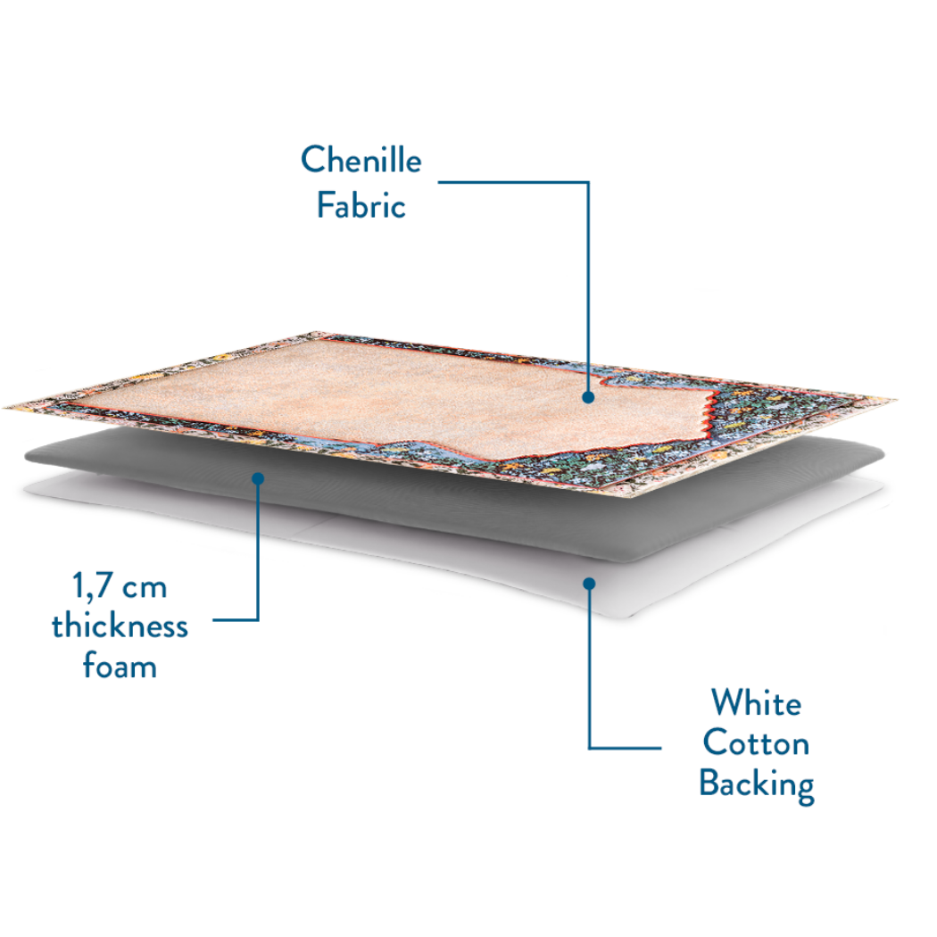 Crafted with chenille fabric, 1.7 cm thick foam, and white cotton backing for unmatched