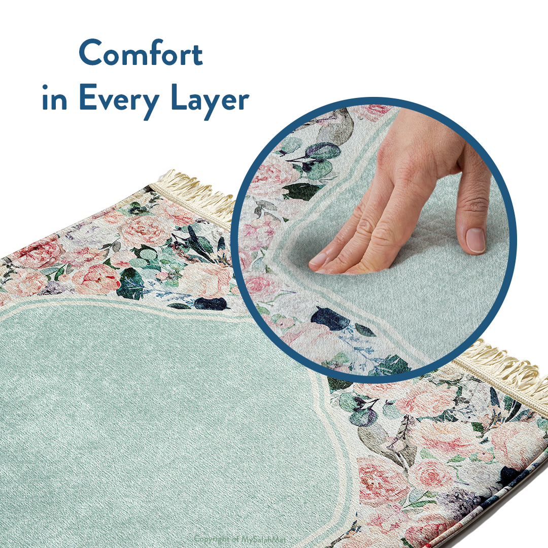 Adult Padded Prayer Mat with Soft Mint Floral Design | Urban Rugs UK