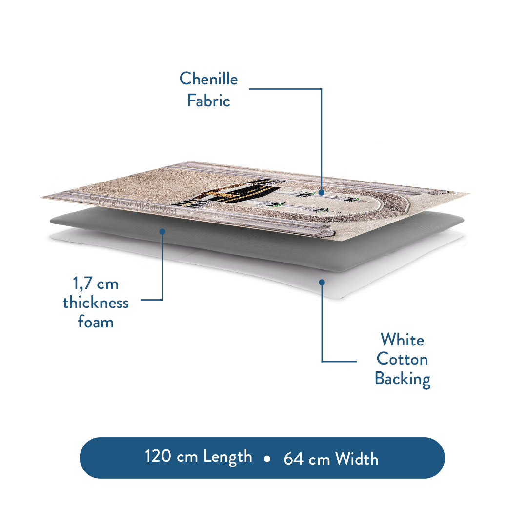Adult Premium Padded Prayer Mat with Masjid al-Haram Design | Urban Rugs UK