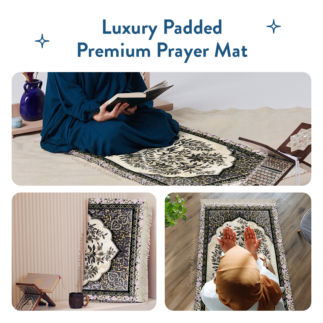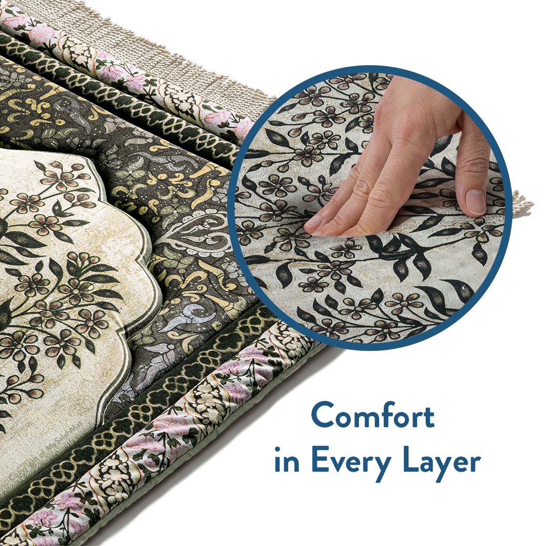 Adult Premium Padded Prayer Mat with Vintage Botanical Design | Urban Rugs UK